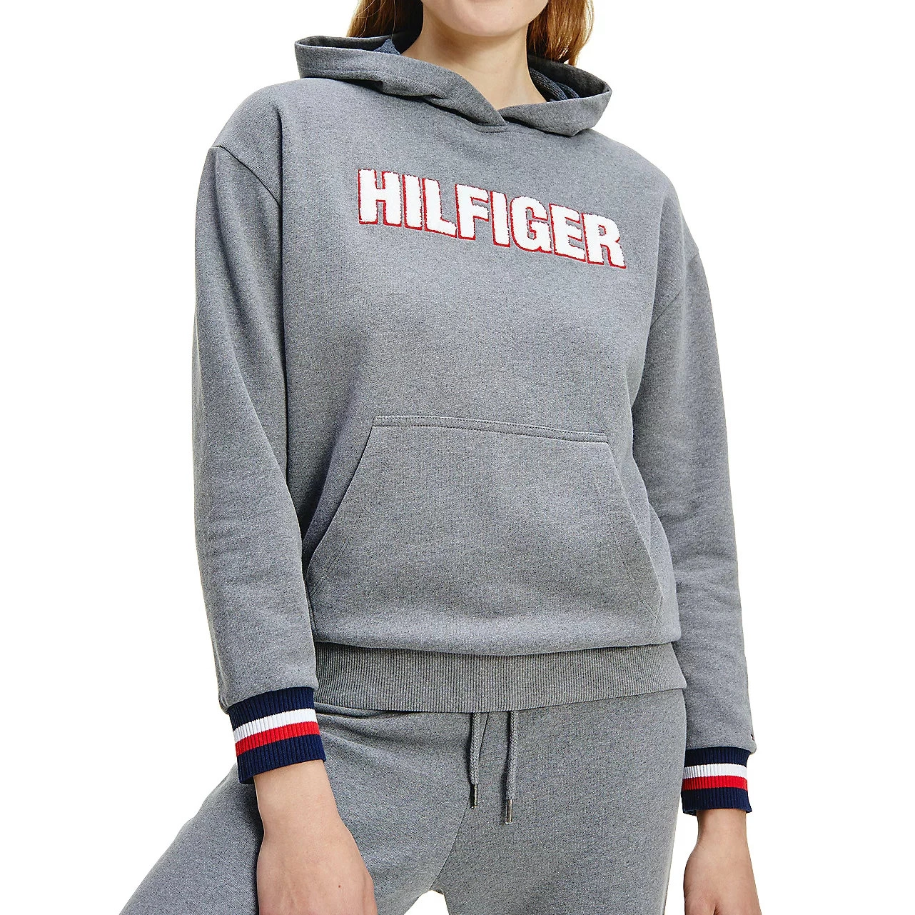 Pohodlná dámská mikina s kapucí oblíbené značky Tommy Hilfiger se skvěle hodí na sport, běžné nošení k džínům i jen tak na doma.