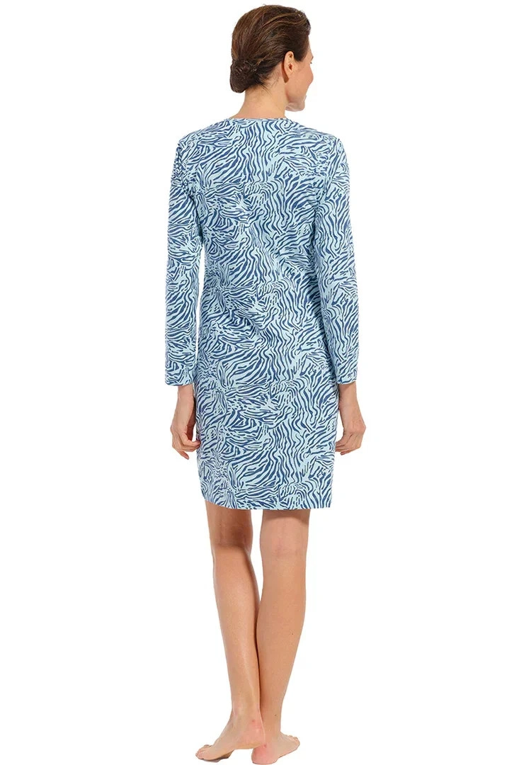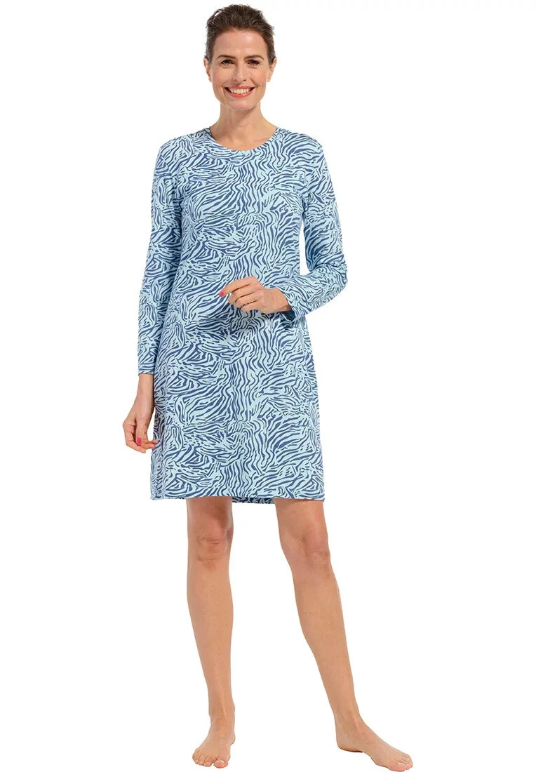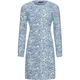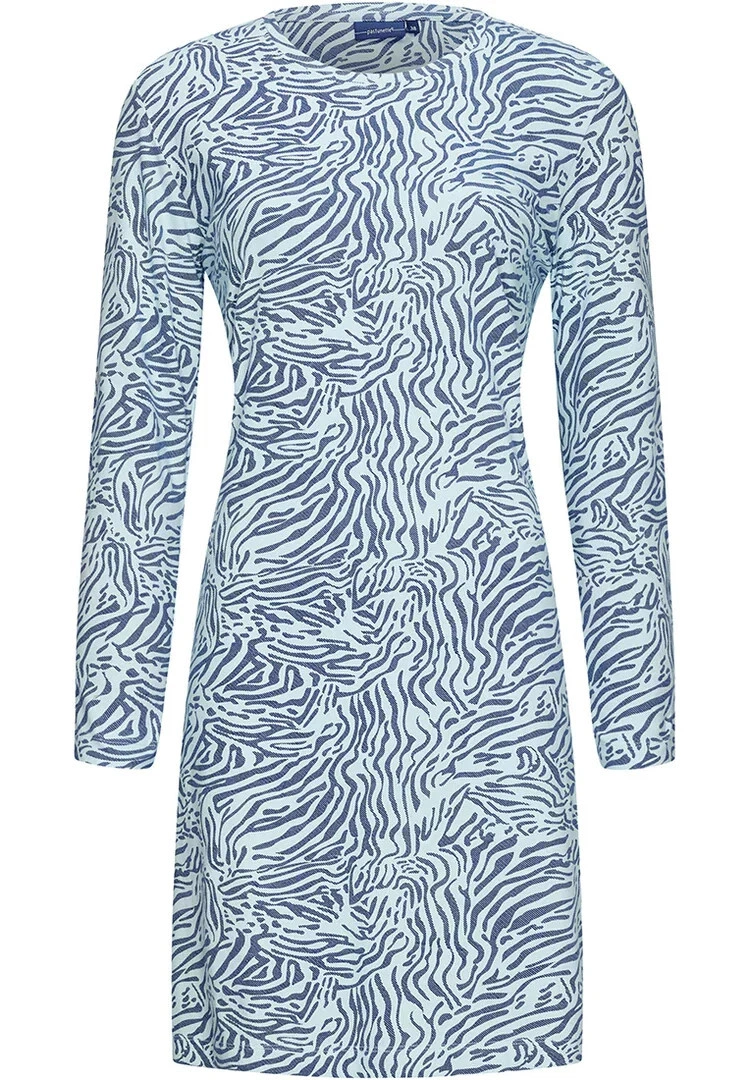 Tato noční košile je vyrobena ze směsi bavlny a elastanu a má módní celoplošný zvířecí potisk ve světle a tmavě modré barvě.