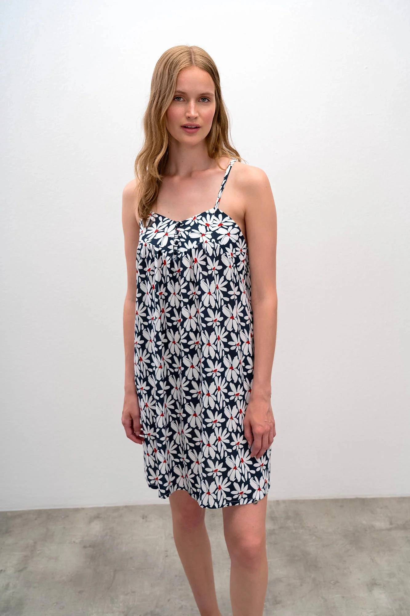 Dámská noční košile 16141-572 - Vamp - na špagetová ramínka, tři knoflíčky. Délka košile nad kolena.