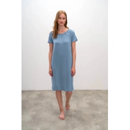 Košile s krátkým rukávem, má kulatý výstřih, zdobený krajkou. Délka ke kolenům.
