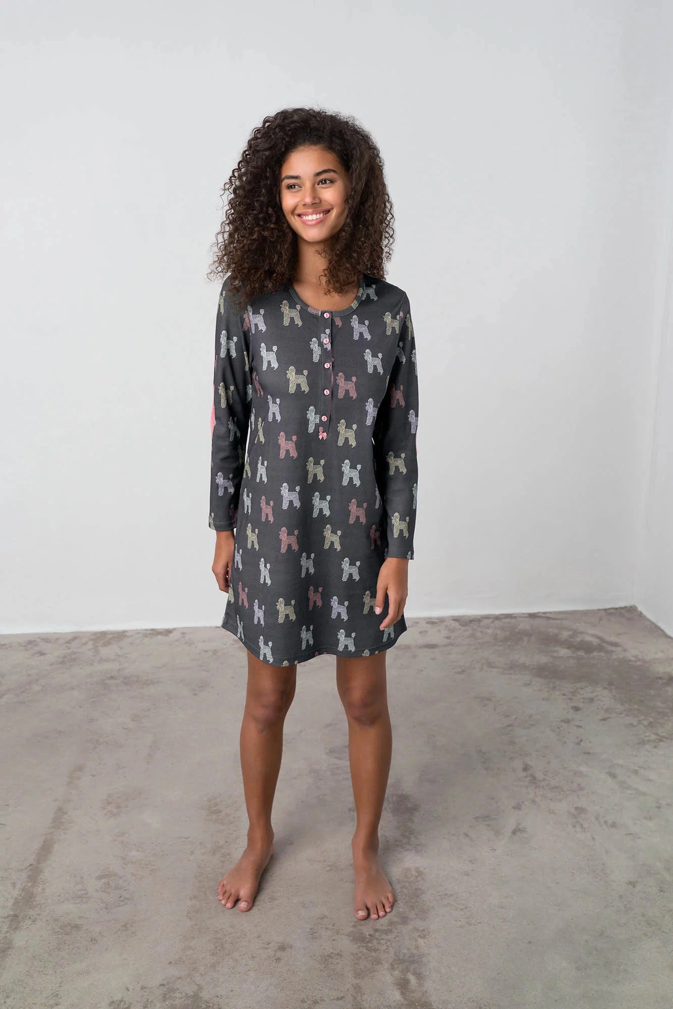 Dámská noční košile - s dlouhými rukávy - délka nad kolena Materiálové složení: 100% bavlna