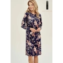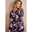 Noční košile 3060 Venus TARO - tmavě modrá barva - je vyrobená z velmi kvalitního veluru - s dlouhými rukávy - zdobená potiskem s květinovým motivem