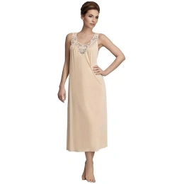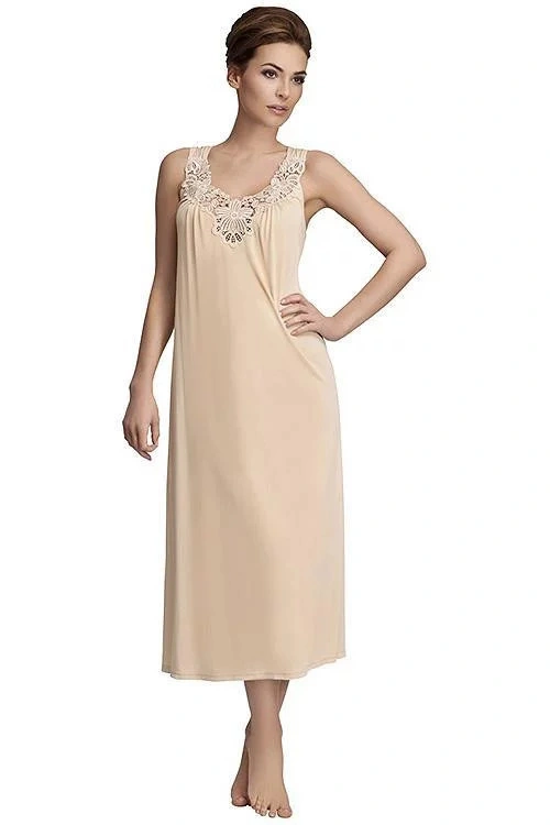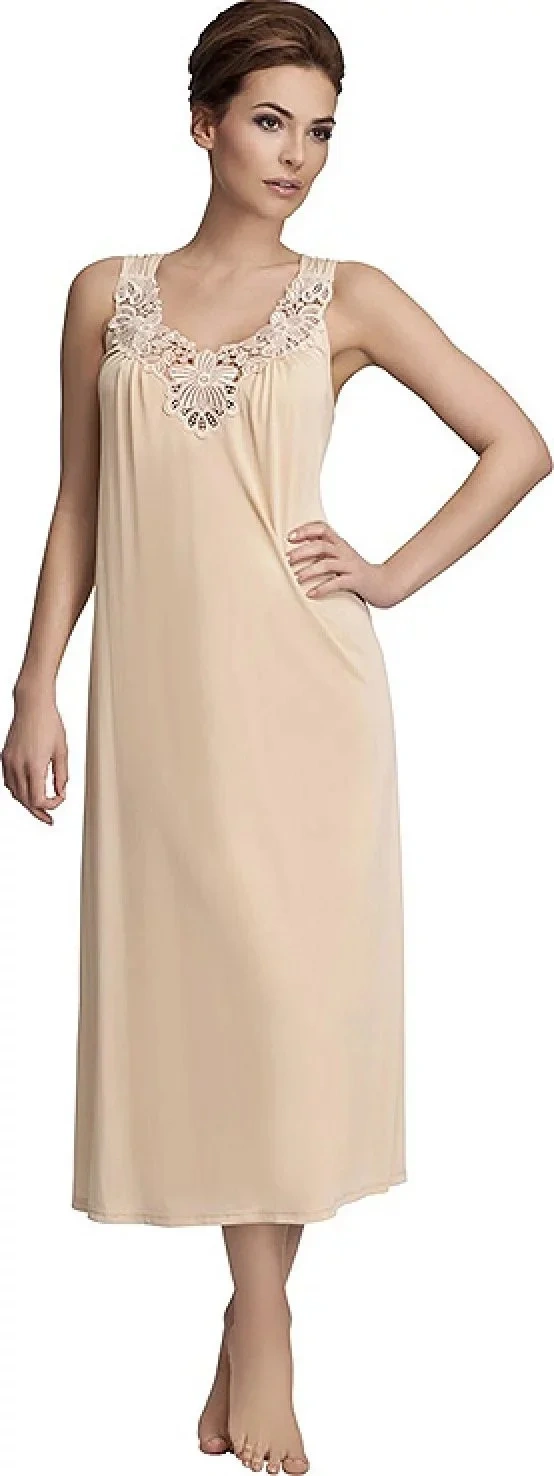 Klasika ve vaší garderobě - dámská noční košile se širokými ramínky.Košile je vyrobená z viskózové látky Vistex. Elegantní plastická výšivka, která je umístěna u výstřihu, dodává modelu na jemnosti a smyslnosti.Komplet můžete vytvořit s překrásným županem 4115.