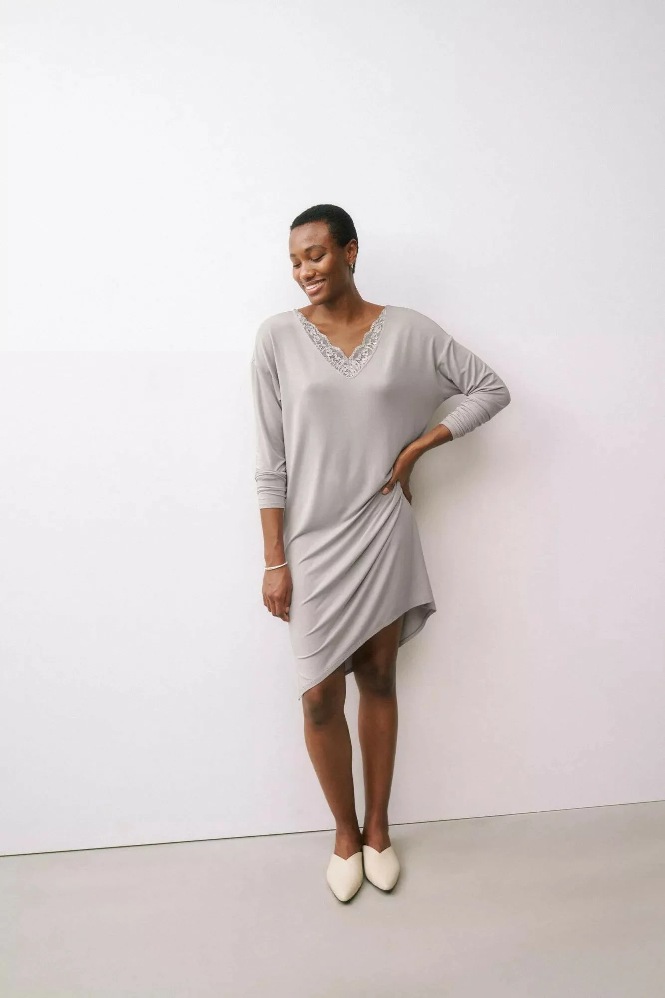 - Noční košile s dlouhými rukávy v pohodlném a lichotivém střihu v délce přes kolena