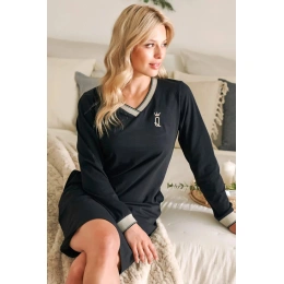 Model využijete jako noční košili, ale také jako tuniku. Výstřih ve tvaru písmene "V" a rukávy jsou obšité ozdobnými stahovacími lemy. Košile je pohodlná, měkká a příjemná na dotyk a při spánku poskytuje pocit komfortu. Model je ušitý s největší pečlivostí.