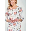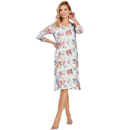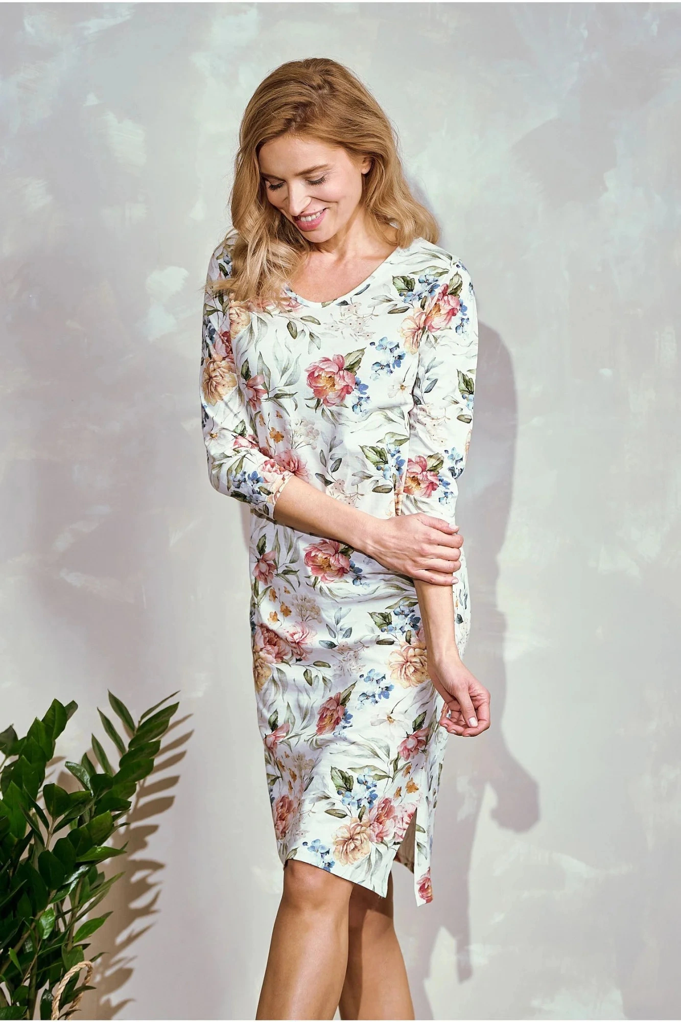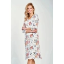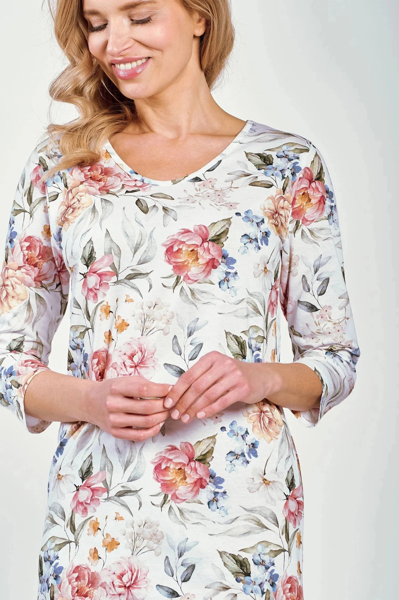 Dámská noční košilka 3248 Louisa TARO - bílá barva - z vysoce jakostní bavlny - se vzorem květů - tříčtvrteční rukávy - s rozparkem