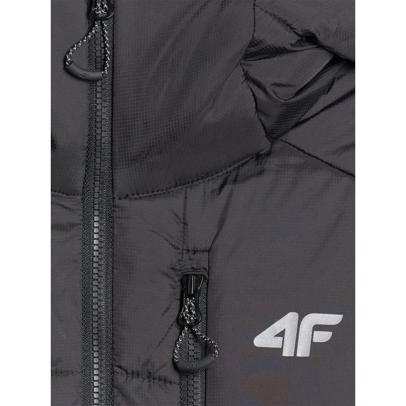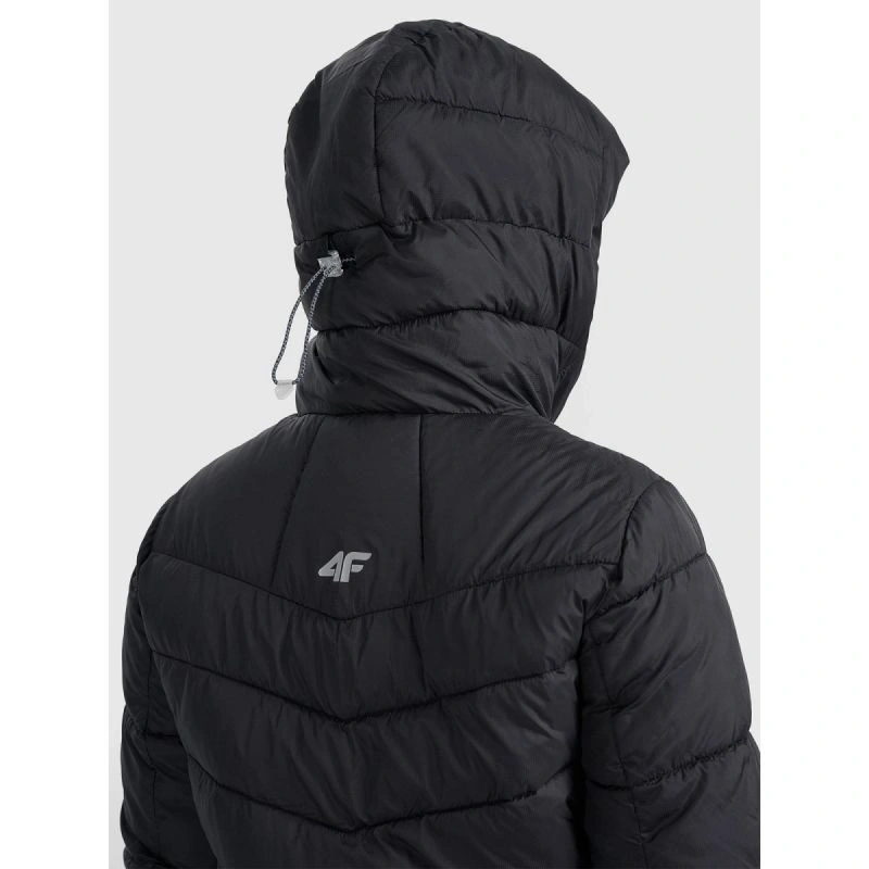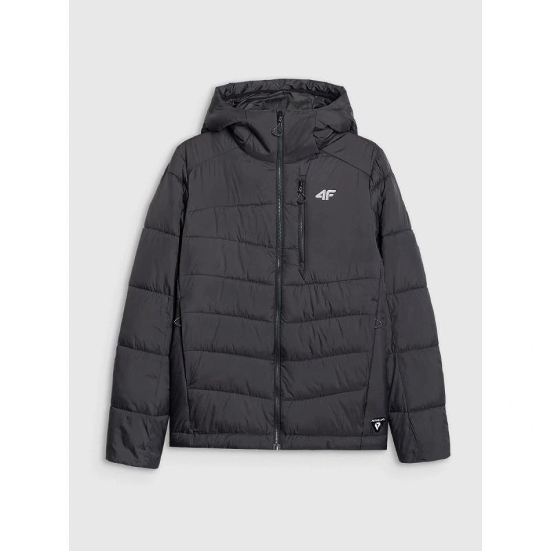 damska kurtka puchowa trekkingowa 4F z wypełnieniem Primaloft Silver to ultralekka i funkcjonalna warstwa stworzona do górskich wędrówek oraz aktywności w zmiennych warunkach pogodowych. Zapewnia skuteczną izolację cieplną nawet w wilgotnym środowisku, a strefowe dogrzanie Primaloft Black wzmacnia ochronę w miejscach najbardziej narażonych na wychłodzenie. Hydrofobowa powłoka pomaga chronić przed wilgocią, a lekka konstrukcja nie obciąża podczas marszu. Kurtka posiada regularny krój, zintegrowany kaptur z regulacją, trzy kieszenie na zamek, mankiety z gumką oraz regulowany dół ze stoperami, dzięki czemu oferuje wysoki komfort i dopasowanie na szlaku. Możliwość spakowania kurtki do własnej kieszeni zwiększa mobilność, a elementy odblaskowe podnoszą bezpieczeństwo w trudnych warunkach oświetleniowych. To model zaprojektowany tak, by zapewniać ciepło, swobodę ruchów i niezawodność na każdym kilometrze górskiej trasy.