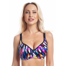 Dámské plavky Fantasy z nové kolekce Fany. Dámský horní plavkový díl v elegantním barevném provedení má jemně vyztužené nařasené košíčky s kosticemi a vysoký střed. Střih košíčků a široký obvod podprsenky s bočními pružnými kosticemi Vám zaručí pevné a pohodlné nošení a přitom Vám vytvaruje krásný a plný dekolt. Podprsenka má pevně všitá, nastavitelná ramínka. Zadní zapínání je ukončeno pevně všitou sponou na záháknutí. U těchto plavek lze libovolně kombinovat spodní a horní díl v řádu zadaných velikostí jednotlivých dílů. Plavky jsou české výroby a koupí tohoto výrobku podpoříte produkci českého oděvního průmyslu.
