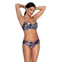 Plavková podprsenka Bardot s květinovým vzorem na tmavě modrém pozadí je žhavou nabídkou pro letní dovolenou. Odnímatelná ramínka a široký pásek všitý do boků podprsenky dělají z podprsenky SK 167 víceúčelové oblečení. Množství kombinací zavazování: klasické vzadu nebo na zátylku a atypické vpředu v podobě mašle pod prsy dělá z tohoto topu nezbytnou součást letního stylingu. Vysoce kvalitní pružná pletenina se prezentuje jako nostalgická akvarelovou exotickou květinou. Jako kompletní sadu nabízíme klasické bikiny SF 167/12 a podprsenky 167/5.