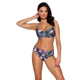 Plavková podprsenka Bardot s květinovým vzorem na tmavě modrém pozadí je žhavou nabídkou pro letní dovolenou. Odnímatelná ramínka a široký pásek všitý do boků podprsenky dělají z podprsenky SK 167 víceúčelové oblečení. Množství kombinací zavazování: klasické vzadu nebo na zátylku a atypické vpředu v podobě mašle pod prsy dělá z tohoto topu nezbytnou součást letního stylingu. Vysoce kvalitní pružná pletenina se prezentuje jako nostalgická akvarelovou exotickou květinou. Jako kompletní sadu nabízíme klasické bikiny SF 167/12 a podprsenky 167/5.