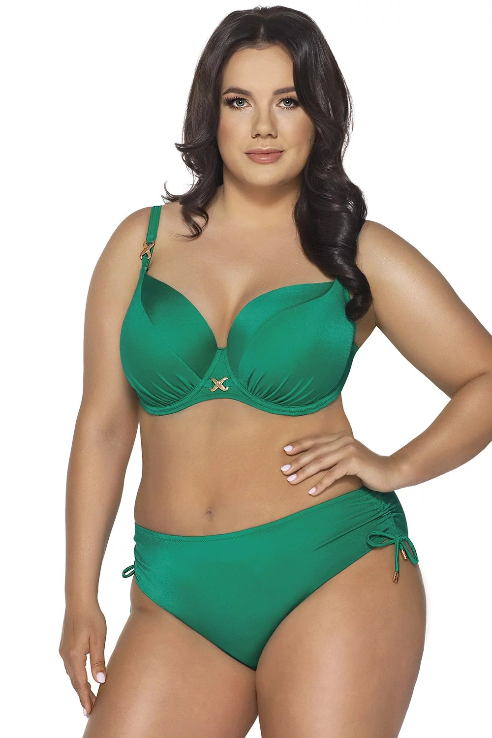 Plavky značky Ava, model SK-182, s drátky, které podpírají prsa a správně je tvarují. Výrobek má nastavitelná ramínka bez možnosti odepnutí. Háčky na ramínka. Plavky se zapínají na přezku. Místo zapínání: na zádech. Výrobek je vyroben z 80 % polyamidu, 20 % elastanu. Boky jsou vyztužené látkou. dámský výrobek.