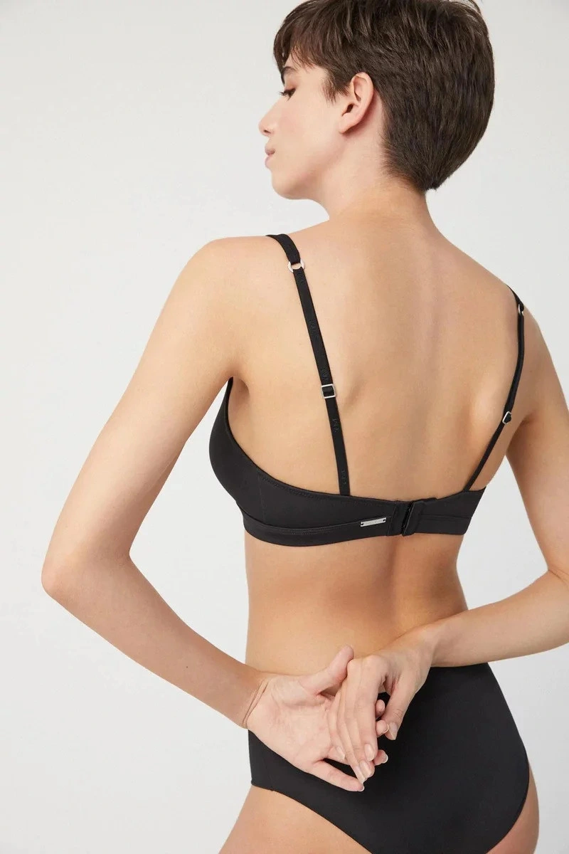 Dámská nevyztužená pružná podprsenka, bez kostic, posuvné ramínka.
