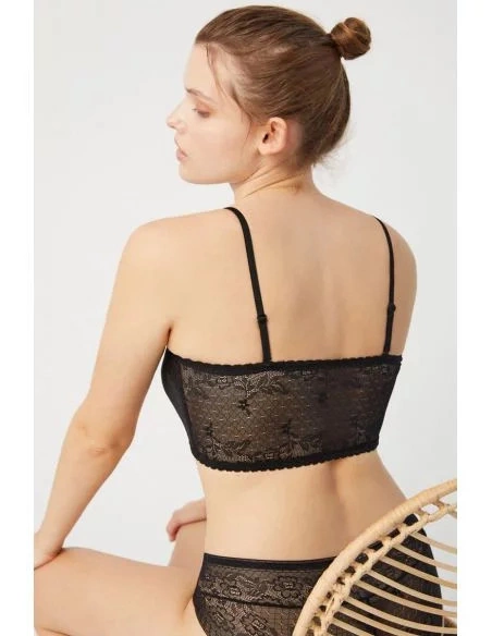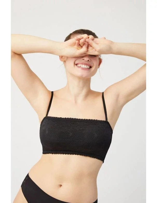 Dámská podprsenka bandage, na odepínací posouvné ramínka, krajková. Všité vsadky.