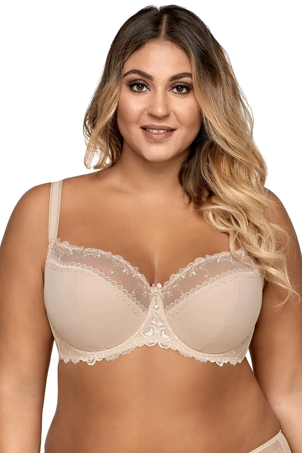 Podprsenka od Avy. Model 1030. Má dráty, které prsa vhodně tvarují. Svislé velrybí kosti zasazené po stranách. Výrobek má nastavitelné popruhy bez možnosti odepnutí. Kovové háčky na popruh. Podprsenka se zapínáním na háčky a oči. Upevňovací bod: vzadu. Dvě řady svislých háčků. Tři stupně horizontálních háčků. Výrobek pro ženy. Výhody produktu: elegantní s výšivkou pro větší poprsí.