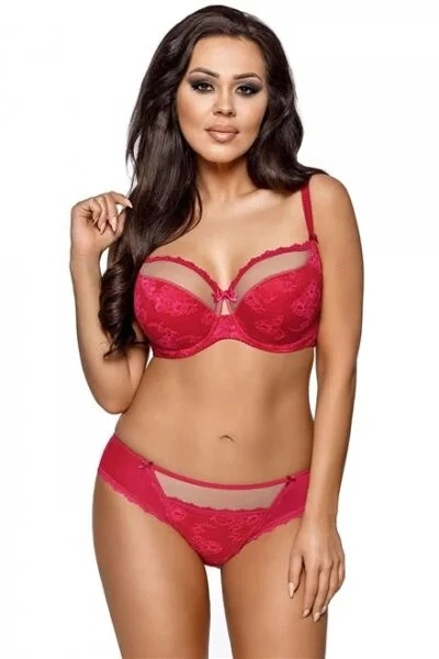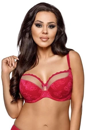 Polovyztužená podprsenka 1720 Fiery tango Ava - s luxusní krajkou - košíčky jsou ve spodní části měkké - horní část košíčků je pokryta síťovinou - ramínka s délkovou regulací (s přibývající se velikostí se ramínka rozšiřují) - krajkové sedlo s kosticemi a mašličkou - obvod má všité boční kostice
