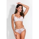 Vnitřní strana košíčků je opatřena měkkou, pokožce na dotek příjemnou pěnou. Vnější stranu halí krajka dodávající podprsence jedinečný vzhled. Horní linie košíčků je z lehkého tylu, elegantně prodloužená krajka nad nimi přidává podprsence nádech luxusu. Ramínka jsou nastavitelná, neodnímatelná. Díky elastickému obvodu bez svislých výztuh je tato podprsenka mimořádně pohodlná i při celodenním nošení. Zapínání na klasické háčky na zadní straně.