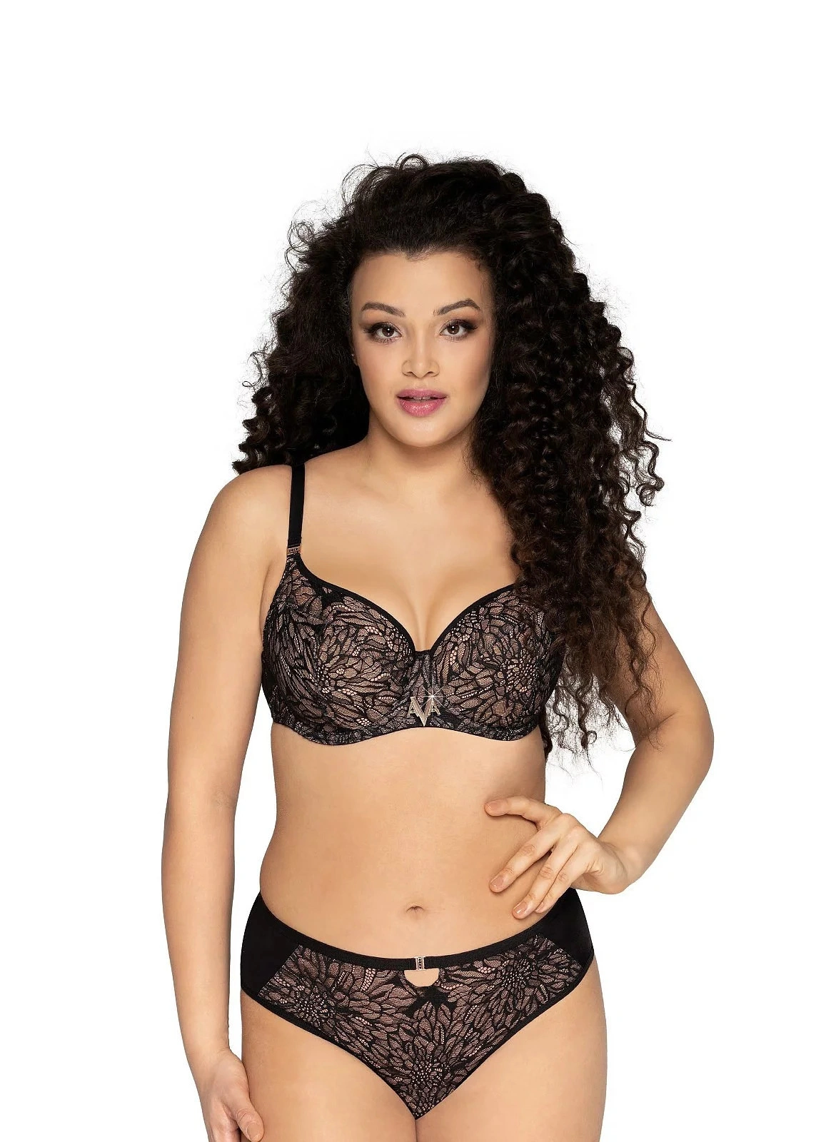 Košíčky modelu jsou vyrobené z krajky s květinovým motivem a jsou podšité béžovou bavlnou. Košíčky mají kostice. Mezi košíčky je ozdobný prvek s nápisem AVA. Obvod modelu je ušitý z pružného tylu a není zpevnění bočními kosticemi. Ramínka je možné nastavit, ale nelze je odepnout. Šířka ramínek závisí na velikosti a rozměru podprsenky. Model má střih a konstrukci typu 924.