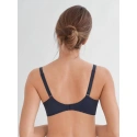 Zadní část podprsenky se zapíná na tradiční háčky a očka, což umožňuje snadné nastavení velikosti. Nastavitelné popruhy zajišťují přizpůsobení a maximální pohodlí při nošení. Povrchová úprava okrajů podprsenky zajišťuje, že pod oblečením zůstane téměř nezjistitelná.