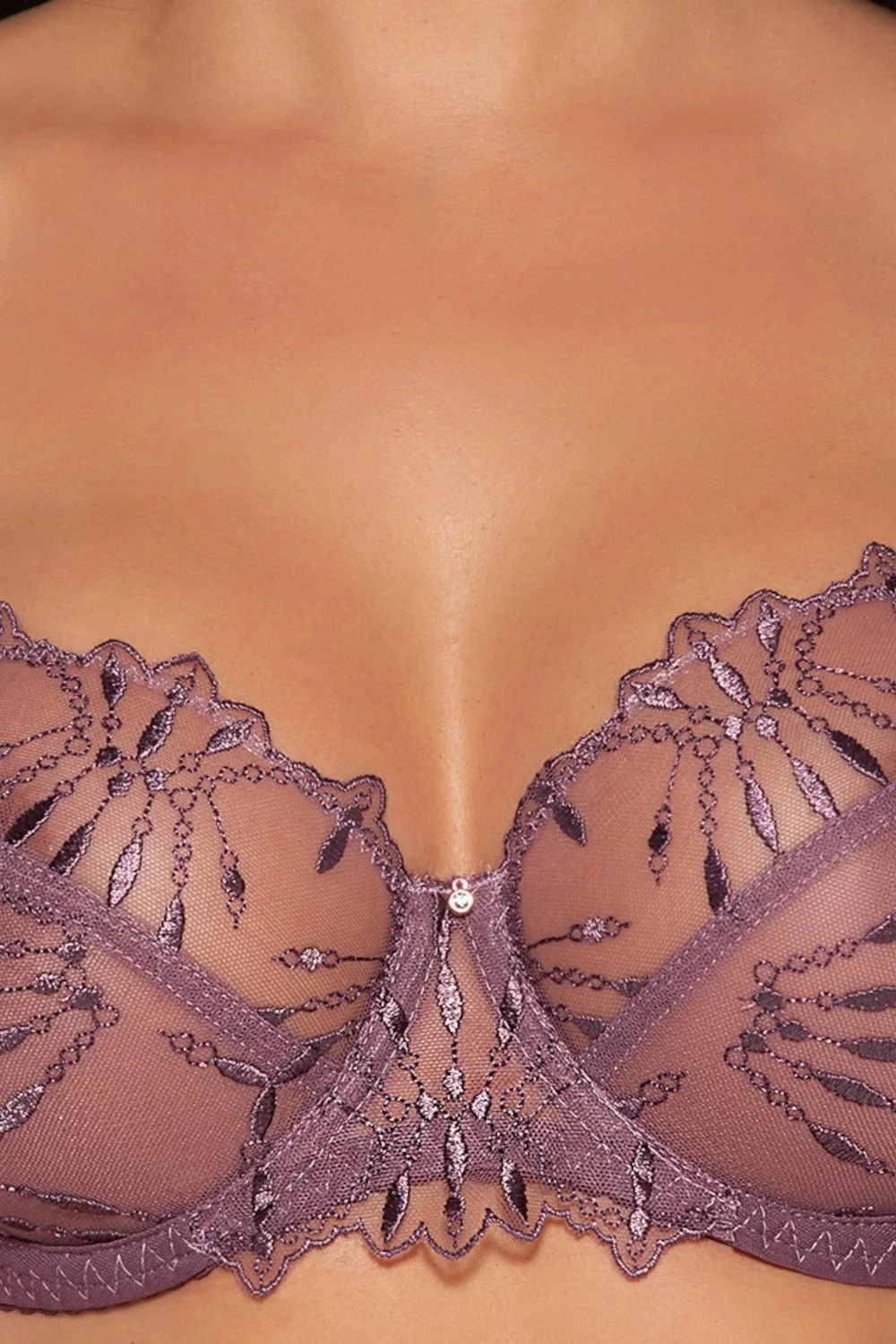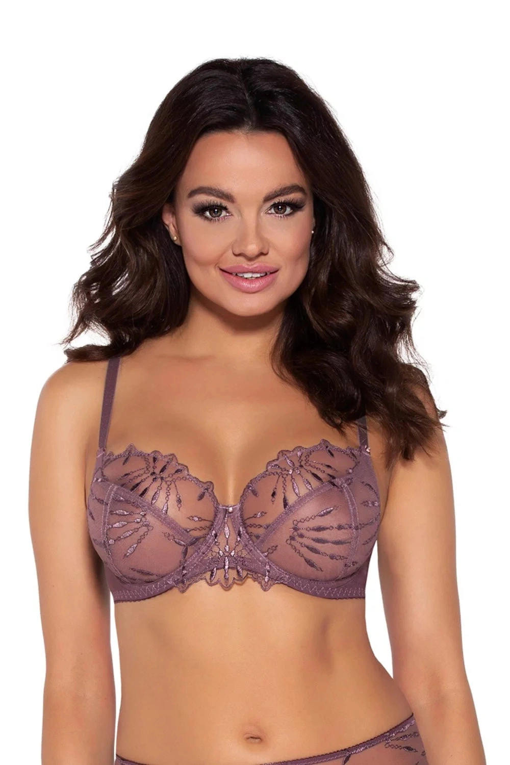 Dámská podprsenka 2035 Ava - semi soft - z kávové síťoviny s výšivkou - měkké košíčky - neodepínatelná a nastavitelná ramínka - zapínání na 2-3 háčky s třístupňovým zapínáním vzadu