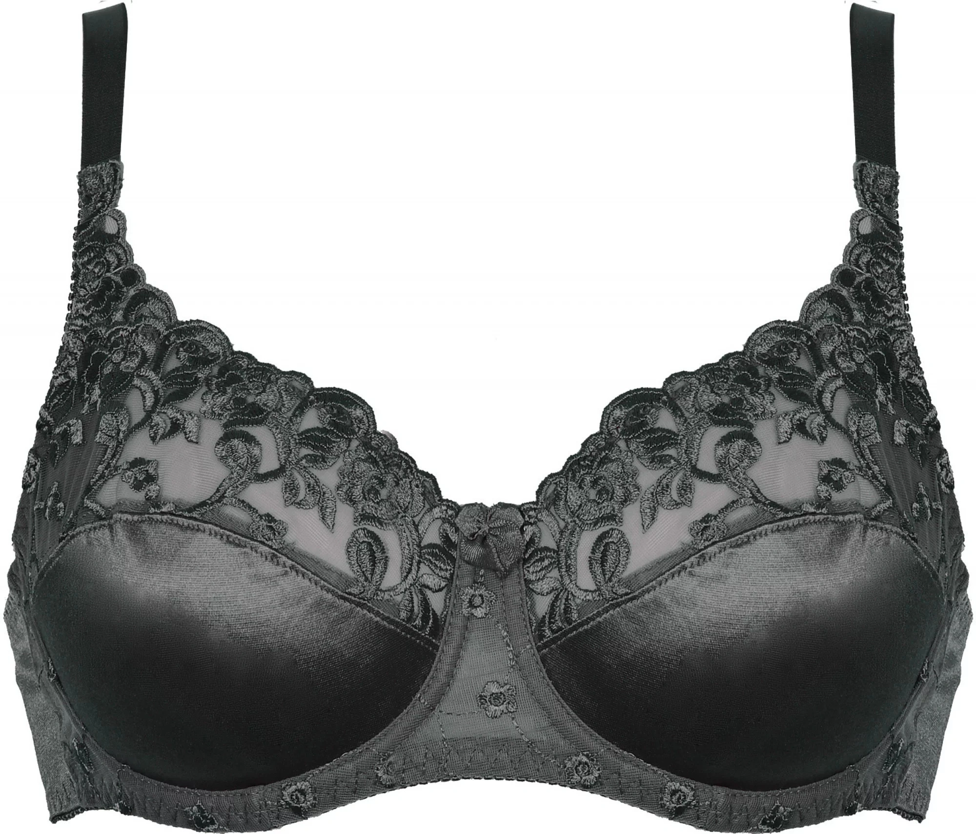Luxusní podprsenka Pleasure State z elastického saténu v dekoltu a bocích dozdobena vyšívaným tylem
