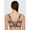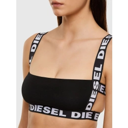 Černá podprsenka od Diesel. Tento styl, vyřezaný ze strečové bavlny, má vyšívané bílé logo štítku.