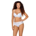 Podprsenka představuje spojení jemnosti a nevinnosti s dokonalou konstrukcí a neocenitelným pohodlím. Tento neobyčejný model typu "push-up" nejenom ideálně obepíná a nadnáší poprsí, ale také jej opticky zvětšuje. Košíčky jsou vyrobené z pěny, jsou pokryté bavlnou a zahalené pěknou lesklou krajkou s květinovým motivem. Ramínka je možné nastavit i odepnout.