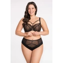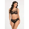 Měkká podprsenka určená pro ženy se středními, velkými a velmi velkými prsy. Poskytuje efekt velmi silného zvednutí a stahování prsou dovnitř, 3dílné košíčky celé z potištěného tylu podšité stabilním tylem. Horní okraj košíčku plynule přechází do pásku. Odnímatelná a nastavitelná ramínka ve výstřihu. Zadní strana je vyrobena z průhledné Lycry, která zajišťuje velmi dobré padnutí a podporu. Boční kostice zabraňují srolování materiálu. Dle velikosti dvou nebo třířadý háček s třístupňovým nastavením obvodu. Neodnímatelná, nastavitelná ramínka ve třech šířkách. Kovové prvky stříbrné barvy.