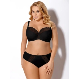 Dámská polovyztužená podprsenka pokrytá jemnou krajkou. Vrchní díl s průsvitným efektem. Košíčky s kosticemi. Konstrukce umožňuje dokonalé vybrání poprsí a správnou modelaci. Pružný obvod, dobře drží.