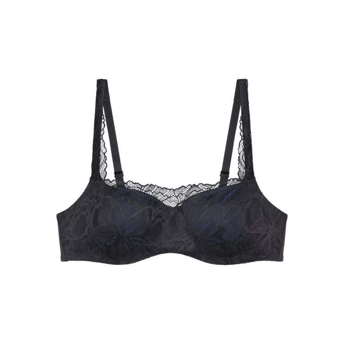 Vyztužená podprsenka typu balkonetka s extra pružnou kosticí a košíčky s jemně se ztrácejícími okraji. Je ideální volbou pro ženy, které hledají oporu a lehkost. Jedná se o podprsenku, na kterou se můžete spolehnout, aniž byste ji zároveň cítila. Je vyrobena z jemné krajky a krémově hebkého mikrovlákna, které je částečně recyklované.