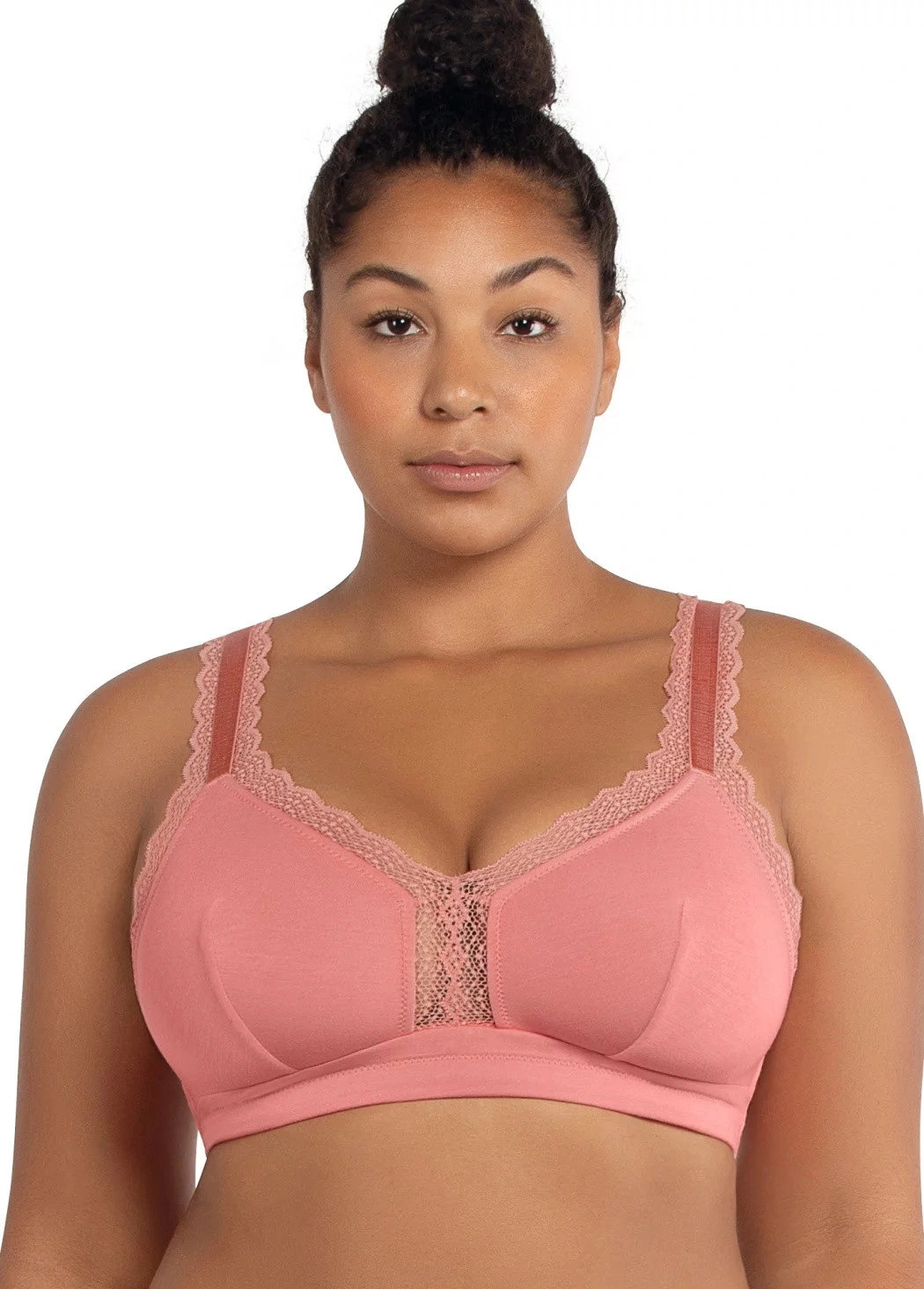 Dámská bezkosticová braletka od britské značky Parfait specializující se na ženy s velikostí D+. Podprsenka je vyrobena z velkého podílu modalu s příměsí elastanu a tím využívá vlastnosti, jako je dokonalá jemnost, pružnost, stálobarevnost i po několikanásobném praní, vysokou odolnost a pod. Má velmi dobrou nasáklivost a schopnost rychle odvádět pot od povrchu těla, což přispává k příjemným pocitům při nošení. Braletka má krajkové obvody kolem košíčků, které přecházejí až k ramenům. Ramínka jsou lehce délkově nastavitelná, v zadní části se dají ramínka zkřížit pomocí háčku na sponách. Obvod zpevňují pružné boční kostice. Obvod je ukončen po spodním obvodu všitou gumičkou. Zadní zapínání je na čtyři háčky a tři pozice. Podprsenka je velmi příjemná na těle ve sportovně-elagantním designu a je vhodná na každodenní nošení při zachování komfortu každé ženy.