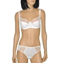 Polovyztužená dámská podprsenka, která je vyrobená z jemné tylové síťoviny ozdobené výšivkou.