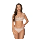 Měkké košíčky nemají kostice. Podprsenka je vyrobená ze síťoviny a do poloviny je podšitá tkaninou. Horní linie modelu je průsvitná a je ozdobená krajkou. Model se zapíná ve přední části háčky. Pohodlná široká ramínka jsou zárukou komfortu při nošení.