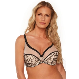 Podprsenka Gaia. Model 1234 Alia. Má dráty, které prsa vhodně tvarují. Výrobek má nastavitelné popruhy bez možnosti odepnutí. Kovové háčky na popruh. Podprsenka se zapínáním na háčky a oči. Upevňovací bod: vzadu. Dvě řady svislých háčků. Tři stupně horizontálních háčků.