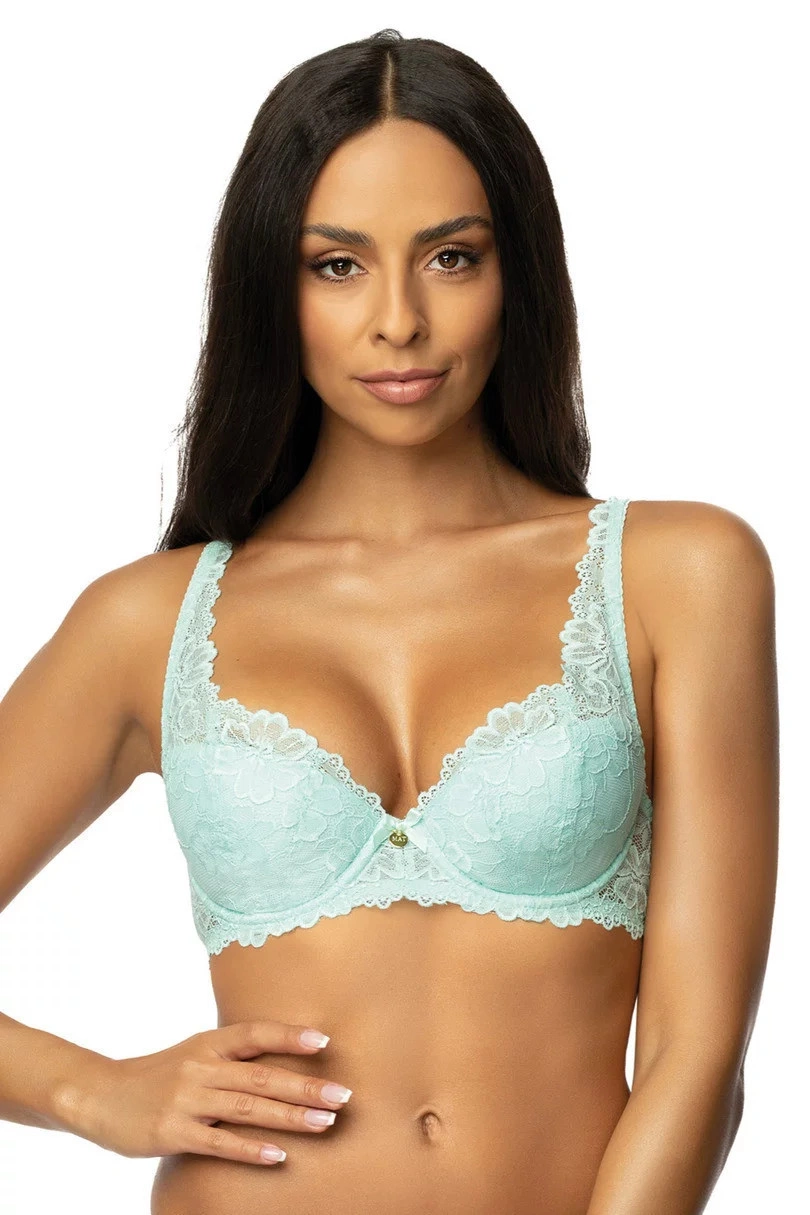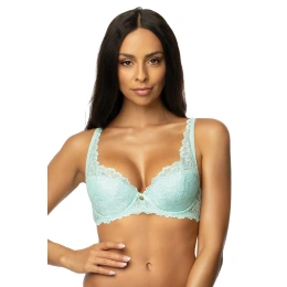 Poloměkká vyztužená krajková podprsenka s květinovým motivem. Vnitřek mísy je vyložen bavlnou. Boky vyztužené svislou velrybí kostí. Ozdobné, nastavitelné popruhy, neodnímatelné. Model dokonale nadnáší a podpírá poprsí.