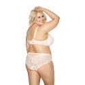 Dámská podprsenka pokrytá krásným prolamovaným vzorem, ideální pro větší prsa. Vertikálně střižené košíčky jsou obohacené o podvazky - dokonale prsa pozvednou, udrží je na správném místě a dobře je vytvarují. Nastavitelná ramínka, šířka přizpůsobená velikosti podprsenky.