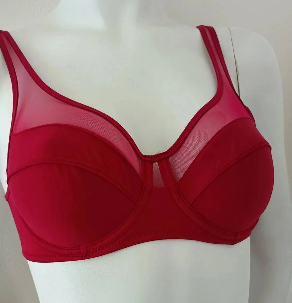 Dámská podprsenka s kosticí, nevyztužená, s tylovou vrchní částí košíčků. Posouvací ramínka, zapínánVíce