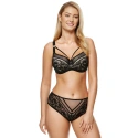 Podprsenka od firmy Gorteks. Gwen/B4 model. Má dráty, které prsa vhodně tvarují. Svislé velrybí kosti zasazené po stranách. Výrobek má nastavitelné popruhy bez možnosti odepnutí. Kovové háčky na popruh. Podprsenka se zapínáním na háčky a oči. Upevňovací bod: vzadu. Dvě řady svislých háčků. Tři stupně horizontálních háčků.