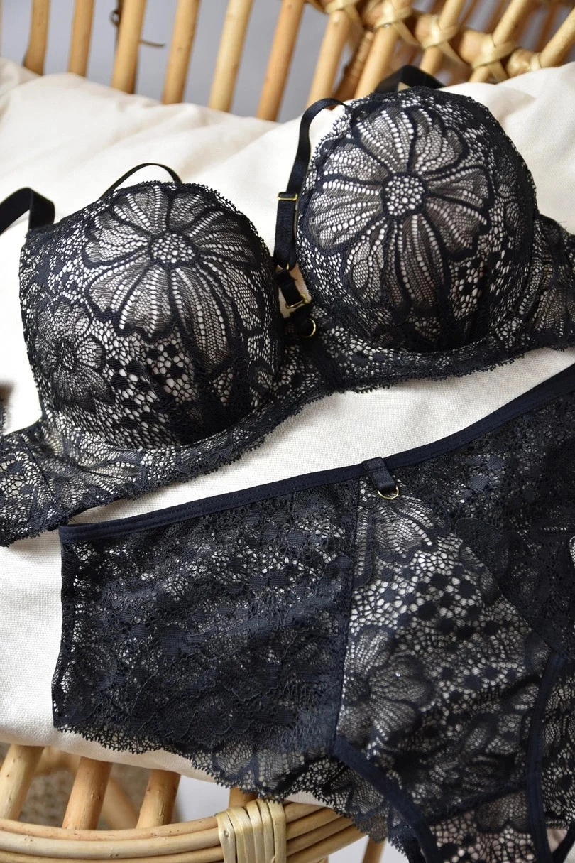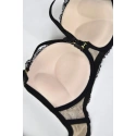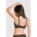 Béžové košíčky pokryté jemnou černou krajkou, vnitřní část s velkou výplní pro shromáždění a pozvednutí prsou.