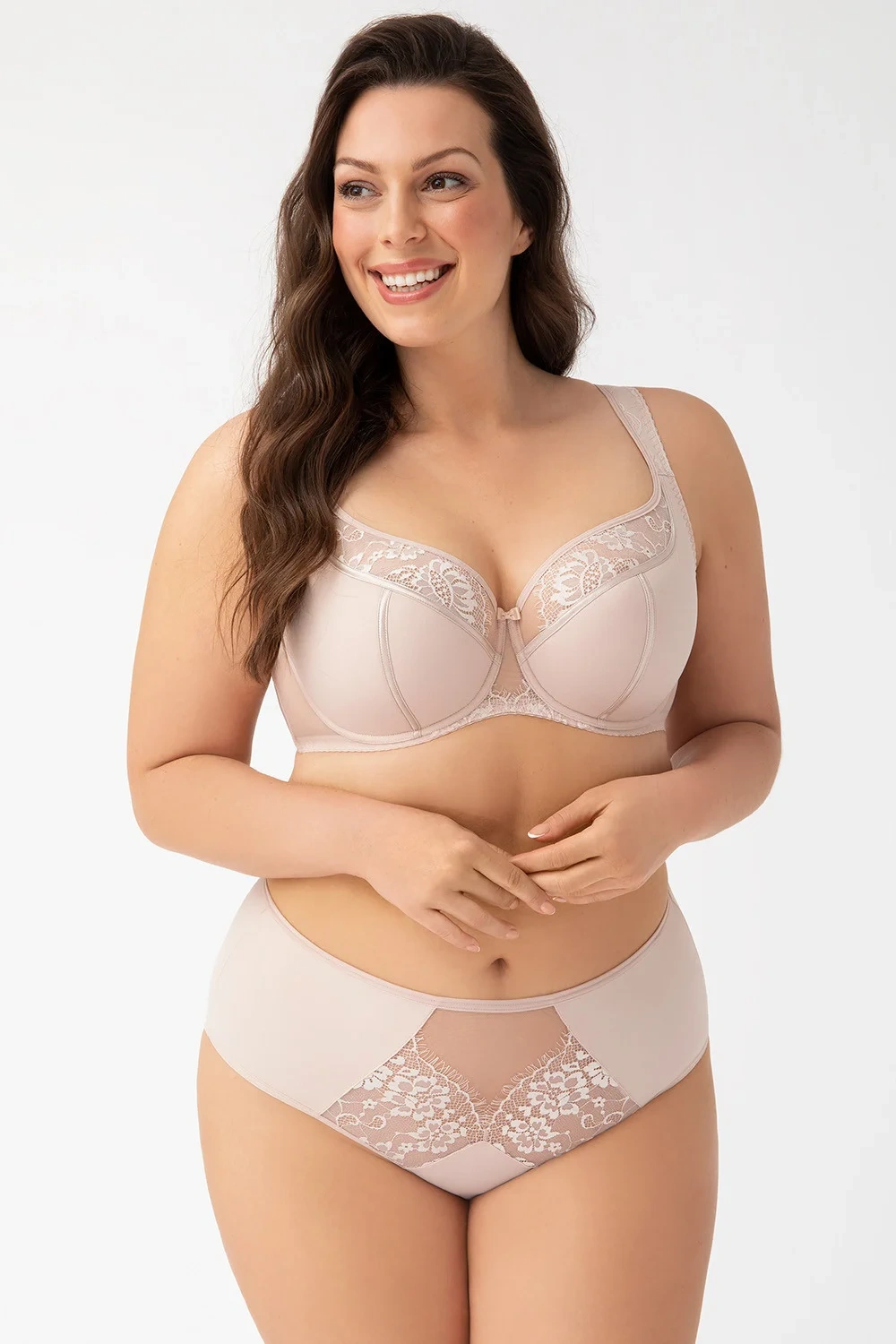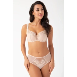 Podprsenka od Gorsenia. Model K647 Alicante. Má dráty, které prsa vhodně tvarují. Svislé velrybí kosti zasazené po stranách. Výrobek má nastavitelné popruhy bez možnosti odepnutí. Kovové háčky na popruh. Podprsenka se zapínáním na háčky a oči. Upevňovací bod: vzadu. Dvě řady svislých háčků. Tři stupně horizontálních háčků.