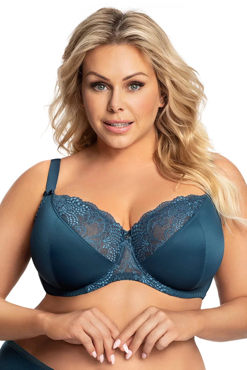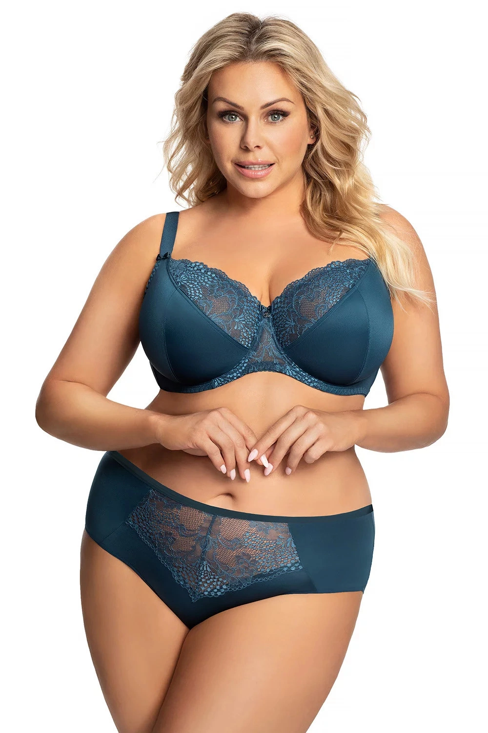 Podprsenka od Gorsenia. Model K686 Rita. Má dráty, které prsa vhodně tvarují. Svislé velrybí kosti zasazené po stranách. Výrobek má nastavitelné popruhy bez možnosti odepnutí. Podprsenka se zapínáním na háčky a oči. Upevňovací bod: vzadu. Dvě řady svislých háčků. Tři stupně horizontálních háčků.
