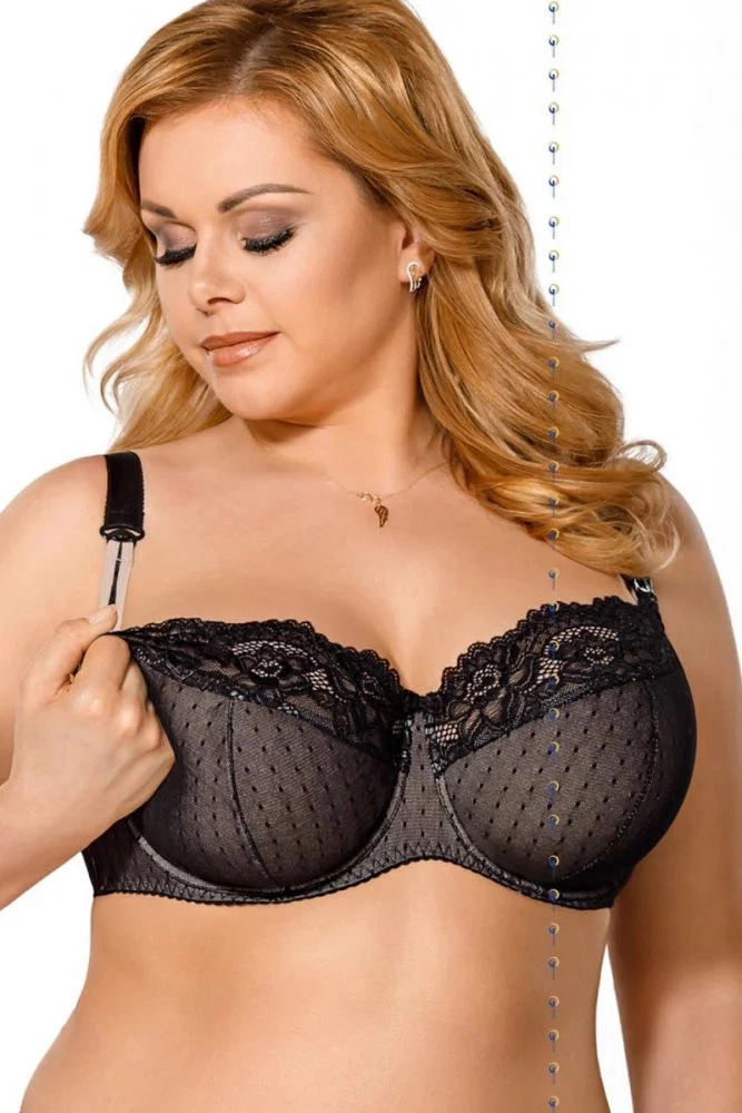 Dámská polovyztužená podprsenka dokonale podpírá prsa. Vyrobeno z tylu a vzorované výšivky. Ozdoba m