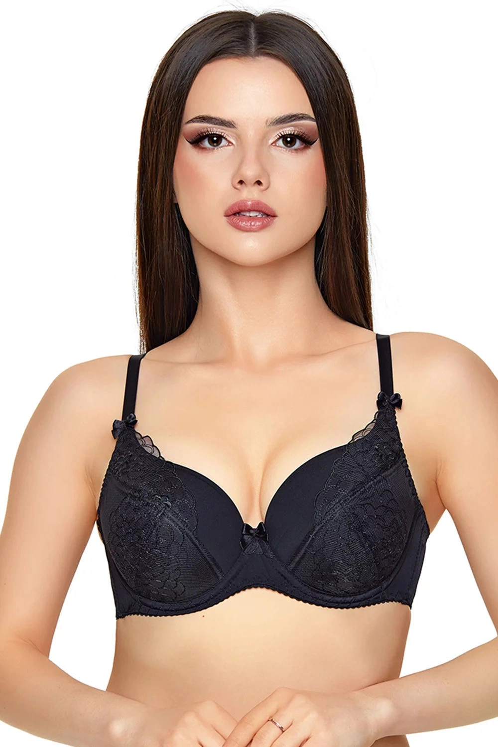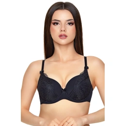 Podprsenka od Jagoda. Model Nikola. Má dráty, které prsa vhodně tvarují. Svislé velrybí kosti zasazené po stranách. Výrobek má nastavitelné popruhy bez možnosti odepnutí. Kovové háčky na popruh. Podprsenka se zapínáním na háčky a oči. Upevňovací bod: vzadu. Dvě řady svislých háčků. Tři stupně horizontálních háčků.