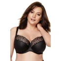 Košíčky modelu jsou vyrobené z látky typu Simplex v černé barvě a z elegantní černé výšivky. Jemná mašlička s lesklou ozdobou, která je umístěná mezi košíčky, dodává celému modelu na kráse a půvabu. Měkké košíčky mají kostice. Podprsenka je typu side-support - má boční panel, který stahuje poprsí z boků ke středu hrudníku. Zadní díly modelu jsou ušité ze zpevněného tylu. Ramínka je možné nastavit, ale nelze je odepnout. Díky svislým kosticím se boky modelu při nošení nedeformují.