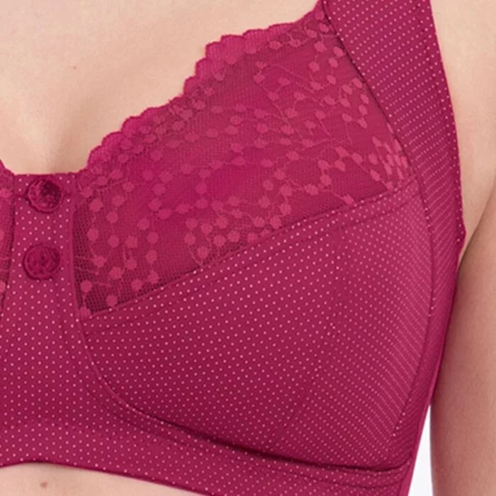 Dámská podprsenka s decentním kontrastním puntíkem Vás zaujme a potěší každý den. Bez kosticová podprsenka pro každou aktivní ženu z kolekce Orely značky Anita. Romantická a hravá s drzými detaily vybavena francouzským puntíkovaným šarmem. Vysoce funkční pletenina použitá pro třídílné košíčky zaručují dokonalou oporu až do šálku H. Tato podprsenka je o pohodlí: můstek má jemně klenutý trojúhelník v oblasti břicha, zatímco polstrované ramínka zadní části vyrobené z tylu Power uvolňují napětí. Košíčky bez výztuže mají vysoký střed a jsou v horní části zavřeného střihu. Podprsenka má zapínání na tři háčky ve třech polohách, toto pomáhá jednoduchému svlékání a oblékání.