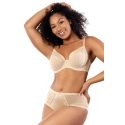 Podprsenka od Parfait. Model P6062. Svislé velrybí kosti zasazené po stranách. Výrobek má nastavitelné popruhy bez možnosti odepnutí. Podprsenka se zapínáním na háčky a oči. Upevňovací bod: vzadu. Dvě řady svislých háčků. Tři stupně horizontálních háčků. Výrobek je vyroben z 58 % z polyamidu a 42 % ze spandexu. Boky vyztužené látkou. Bezešvá povrchová úprava okrajů. Výrobek pro ženy.