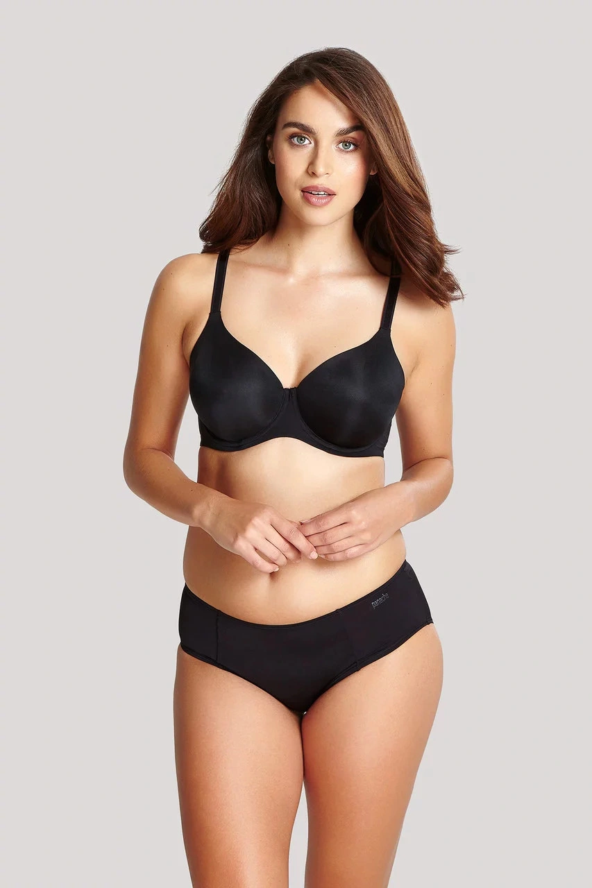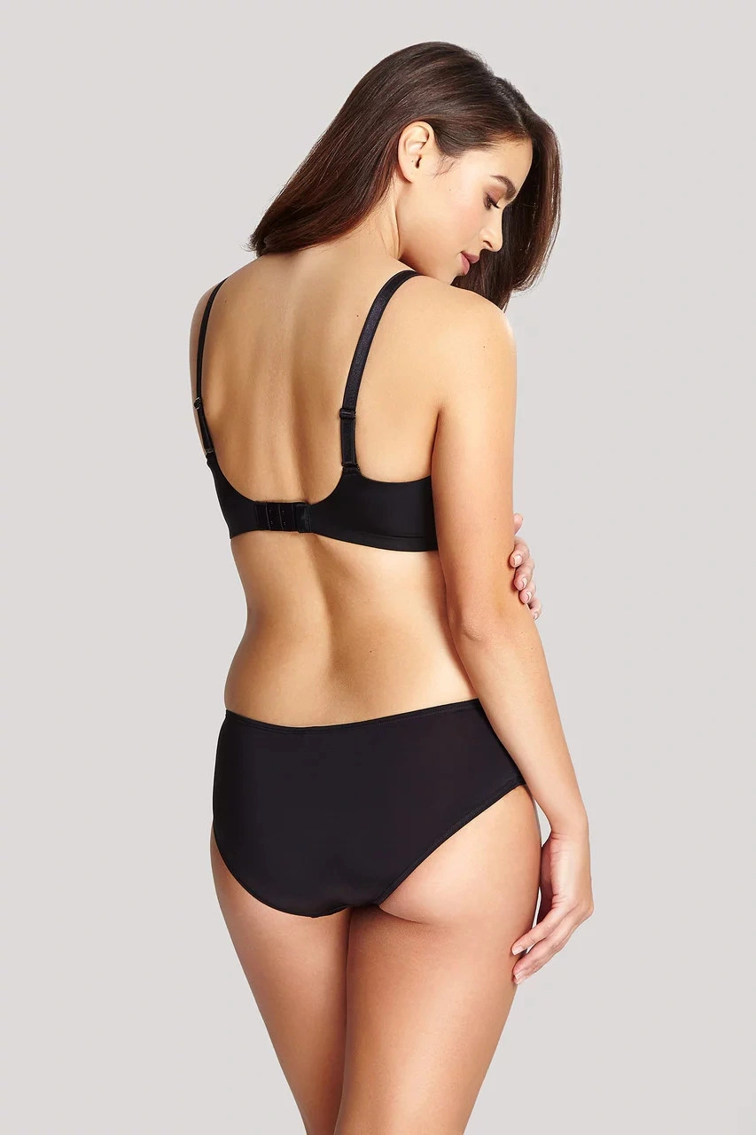 Řada Porcelain Elan se vyznačuje na dotek jemnými pololesklými látkami, pohodlným střihem a vícecestnými ramínky, které dodají všem vašim potřebám spodního prádla punc luxusu Panache. Nevyztužená podprsenka Porcelain Elan je velmi lehký styl, vytvořený z měkkých košíčků z mikrovlákna, které jsou tvarované tak, aby vám poskytly hladký tvar, ale nejsou vyztužené, takže jsou prodyšné. Střední část předního dílu je o něco nižší, což zajišťuje pohodlný a přirozený tvar, a křidélka z mikrovlákna vytvářejí diskrétní vzhled pod oblečením. Tato nezbytná podprsenka v tričku je ideální po celý rok, ale my ji milujeme zejména v teplejších měsících, protože je lehká a prodyšná! Zvolte černou barvu, abyste získali univerzální řešení. Tvarované košíčky bez vycpávek poskytují prodyšný a hladký pocit Síťovinou podšitá křidélka vám zajistí pohodlné obepnutí těla a hladký povrch Plně nastavitelná ramínka Labutí háčky na zadní straně ramínek umožňují přeměnu na styl s kříženými zády Polstrované háčky z mikrovlákna mají vytištěné informace o péči pro maximální pohodlí (žádné štítky!)