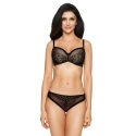 Svůdná vyztužená podprsenka dokonale zvýrazní ženské tvary. Košíčky jsou pokryté krajkou s květinovým motivem a saténovým povrchem. Třídílné košíčky z tenké korzetové pěny. Vnitřní část košíčků je vycpaná bavlnou. Záda z krajky vyztužené tylem. Nastavitelné popruhy, neodnímatelné. Svislé boční velrybí kosti zabraňující bočnímu zmačkání. Jemné zdobení mezi šálky.