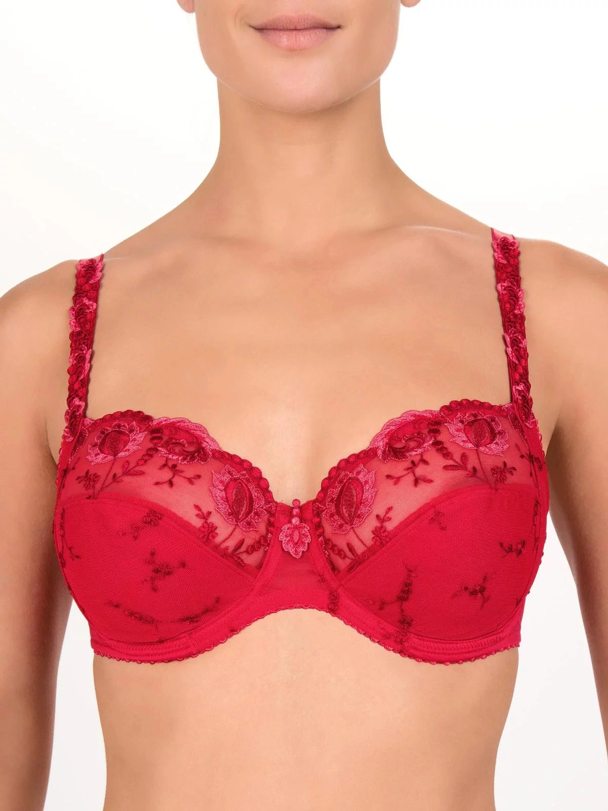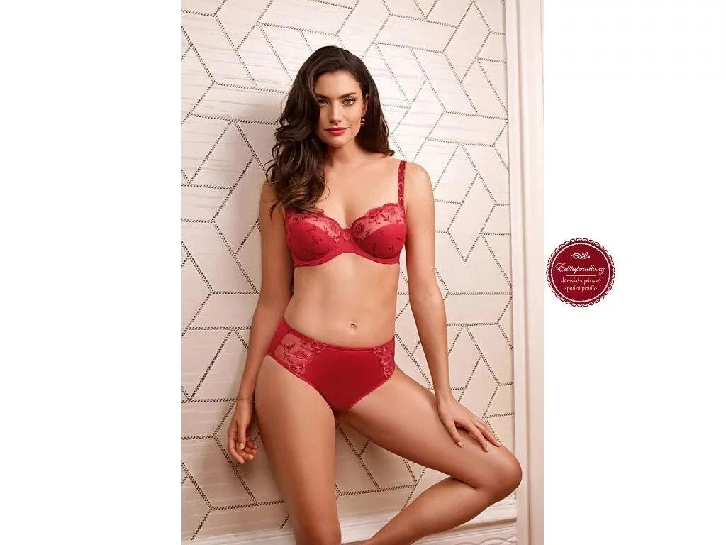 Podprsenka má klasickou strukturu s jemným a plochým šněrováním. Luxusní krajka pokrývá celý košíček. Podprsenka má navíc boční zpevňující klín, poskytuje silnou oporu pro prsa a jejich krásný zaoblený tvar.
