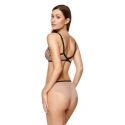 Fenomenální měkká podprsenka jemně pozvedne prsa a dodá jim krásný, přirozený tvar. Košíčky jsou vyrobeny z netradiční výšivky s květinovým vzorem určené pro velké velikosti. Třídílné košíčky s balkonetovým střihem. Část košíčků je z vnitřní strany vyztužená elastickým tylem. Nastavitelné, neodnímatelné ramenní popruhy, široké ve velkých velikostech. Zadní díl z vyztuženého elastického tylu. Svislé boční velrybí kosti zabraňující bočnímu zmačkání.
