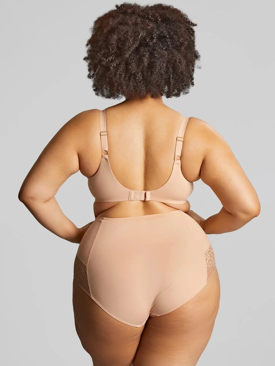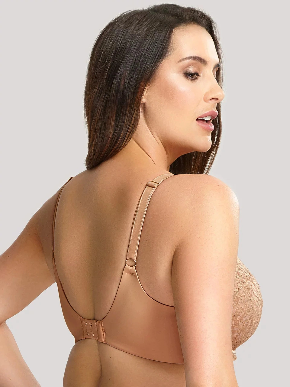 Podprsenka Estel Full Cup Bra značky Sculptresse dodá vašemu prádelníku každodenní šmrnc. Spodní košíčky s podšívkou poskytují úžasnou oporu a vystupují, čímž zlepšují tvar, zatímco horní košíčky z elastické krajky jsou přizpůsobivé pro plnější poprsí. Model Estel je navržen s úžasnou zdobenou krajkou v nádherném medovém odstínu a s detaily uprostřed klíčové dírky a dodá vašemu každodennímu stylu nádech luxusu. čtyřdílné košíčky s horními košíčky z elastické krajky a spodními košíčky s podšívkou Drátované Plně nastavitelná ramínka Boční ramínka pro centralizaci poprsí Dvouvrstvá křidélka pro extra jemnost a vyhlazující efekt